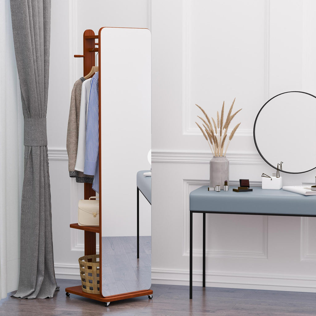Tieni sempre i tuoi vestiti a portata di mano con questo pratico specchio da terra 2 in 1 . Non solo ti permette di specchiarti a figura intera per controllare il tuo look quotidiano ma è anche uno specchio appendiabiti. La barra attaccapanni, i ganci e le mensole posteriori ti permettono di riporre in modo ordinato vestiti e accessori per averli sempre a portata di mano. Salvaspazio e facile da spostare grazie alle ruote, è il complemento d'arredo perfetto per ogni tua stanza.