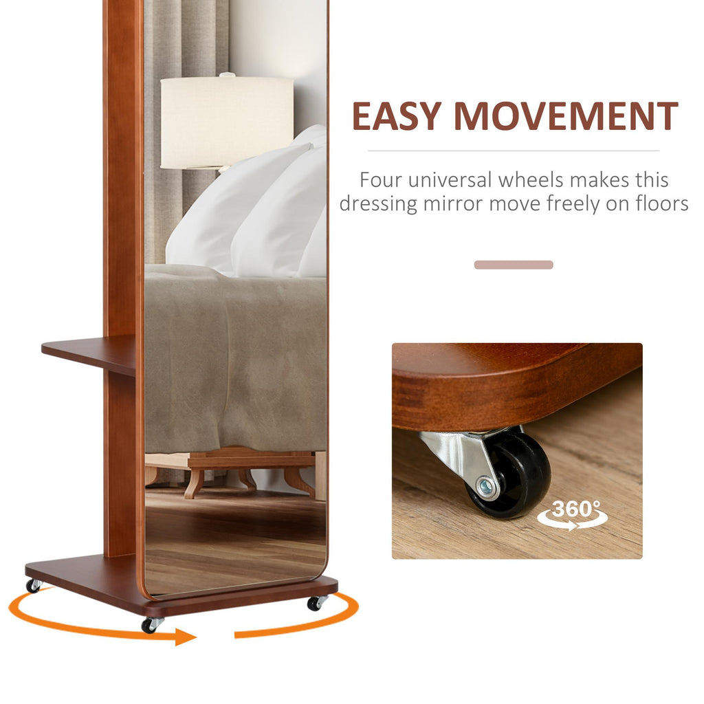 Specchio da Terra 40x44,5x170 cm con Appendiabiti Mensole e Ruote Noce