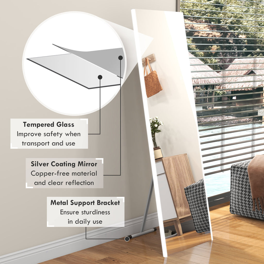 Specchio da Terra a 3 Colori e Luminosità Regolabile 50x50x148 cm in Vetro Temperato e Acciaio Bianco