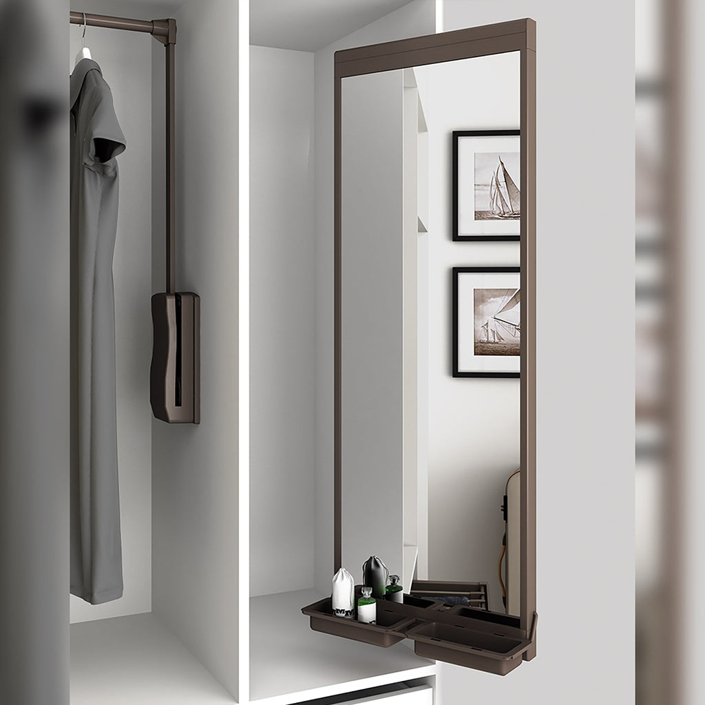 Specchio Estraibile per Armadio 113x41,5 cm Chiusura Soft Emuca Moka