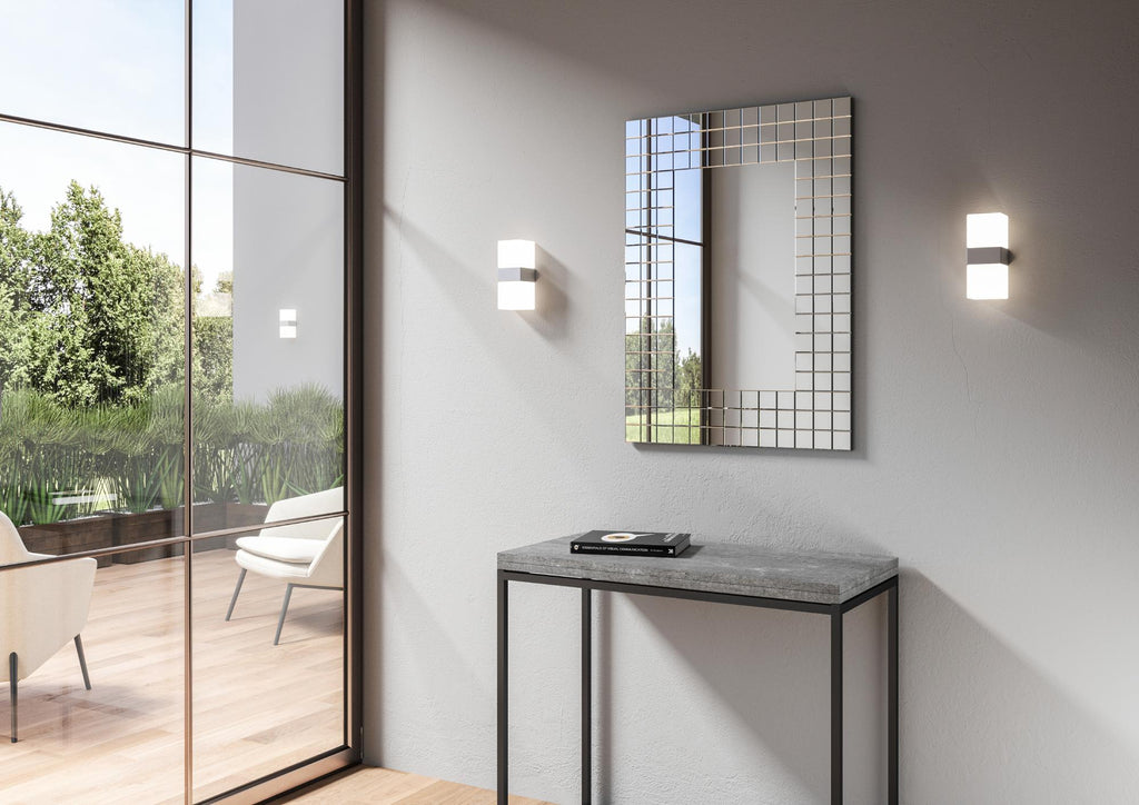 Hokkaido, uno specchio da parete dallo stile originale e dal design moderno. Composto da uno specchio centrale 60x35 cm e da altri specchietti dimensione 5x5 cm, che ricreano una trama geometrica adatta a qualunque stile di arredamento. Un elemento d'arredo che arricchirà con luminosità qualunque ambiente. Posizionabile orizzontalmente o verticalmente a seconda delle proprie preferenze.