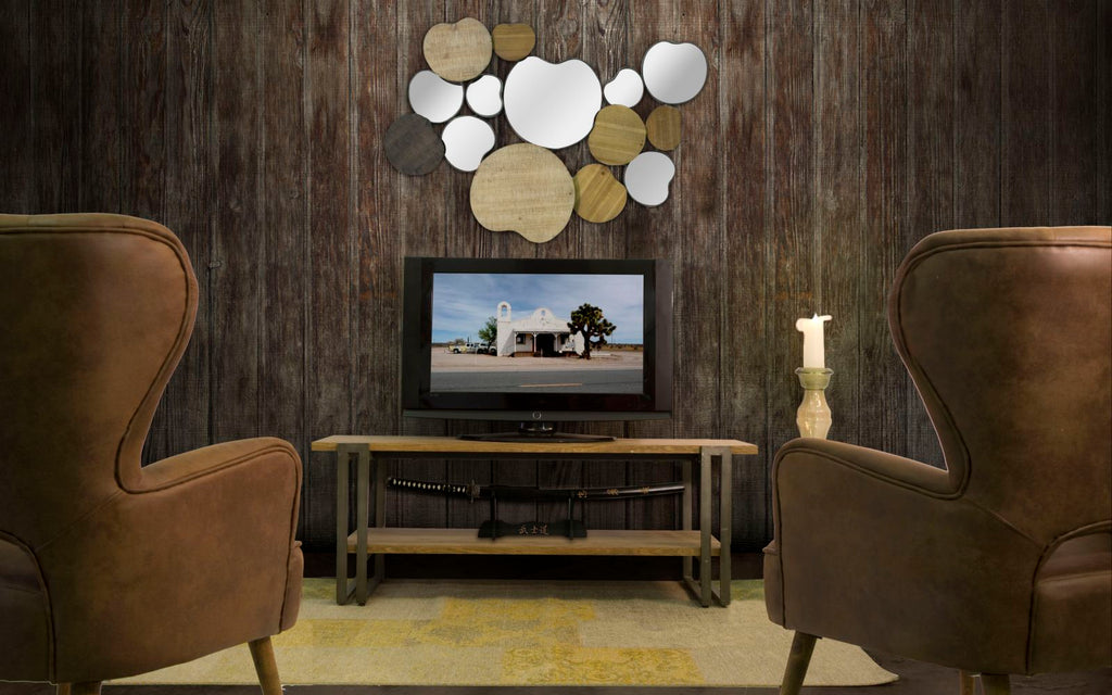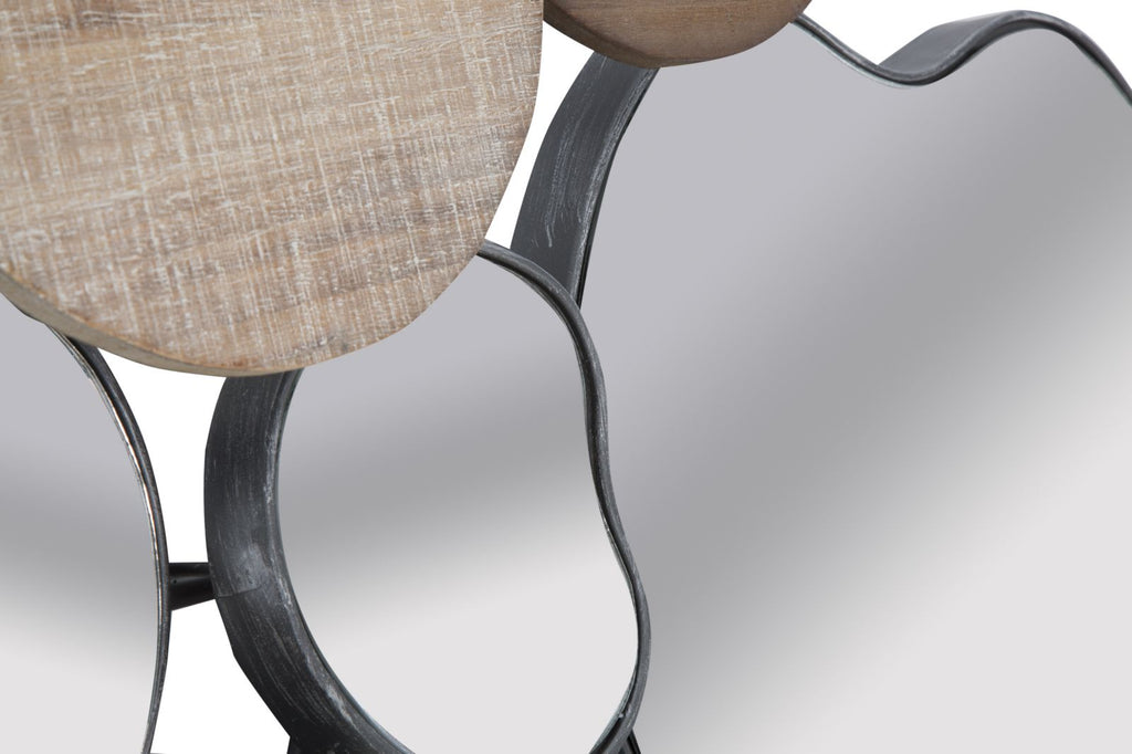Specchio da muro in metallo e legno dalle linee 3D e multisfaccettate. Un oggetto di decoro che rende unica ogni stanza.