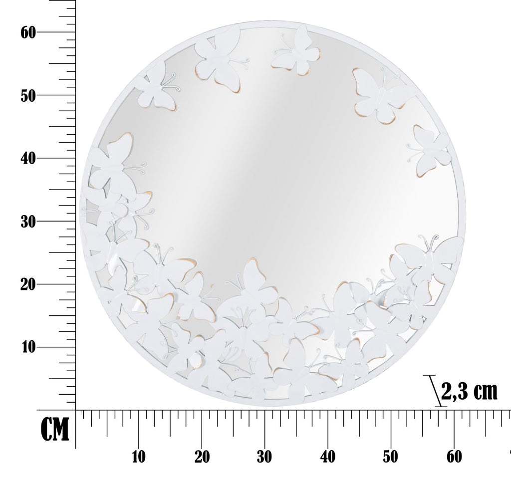 Specchio Rotondo Bianco Butterfly 62,5x2,3 cm in Ferro Specchio e MDF Bianco e Oro