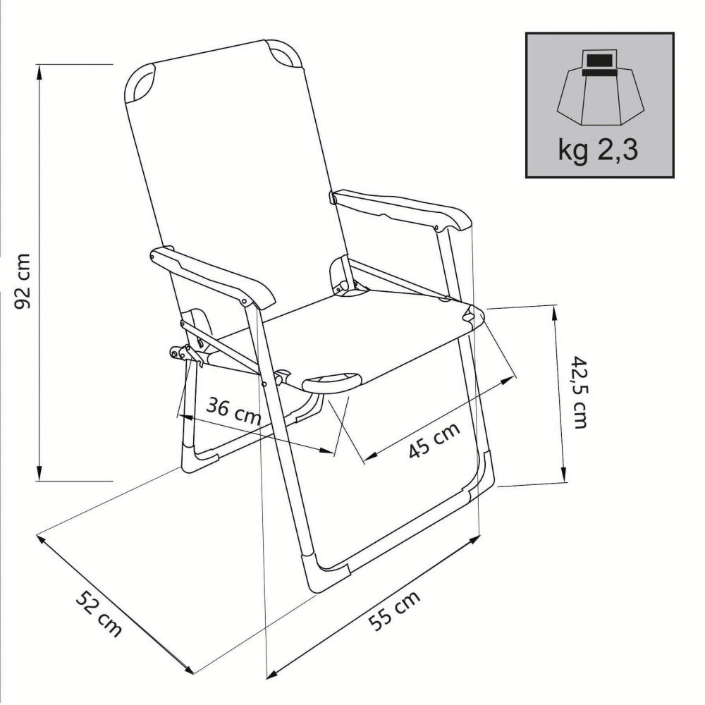 Spiaggina Pieghevole 52x55x92 h cm in Textilene Azzurro