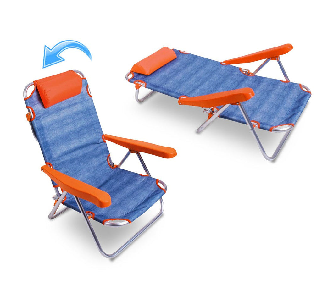 Prendere il sole in riva al mare è una tentazione di molti. Quanti infatti, non avendo l'attrezzatura adatta, non resistono e lo fanno sdraiandosi semi immersi dal mare? Ecco la soluzione: una fantastica spiaggiana, totalmente reclinabile, con cuscino e braccioli per un relax senza limiti. Resistente e richiudibile, due requisiti fondamentali per potersi rilassare senza pensieri. I colori fluo, il tessuto che ricorda il jeans, fanno venire subito voglia d'estate...che aspettate?