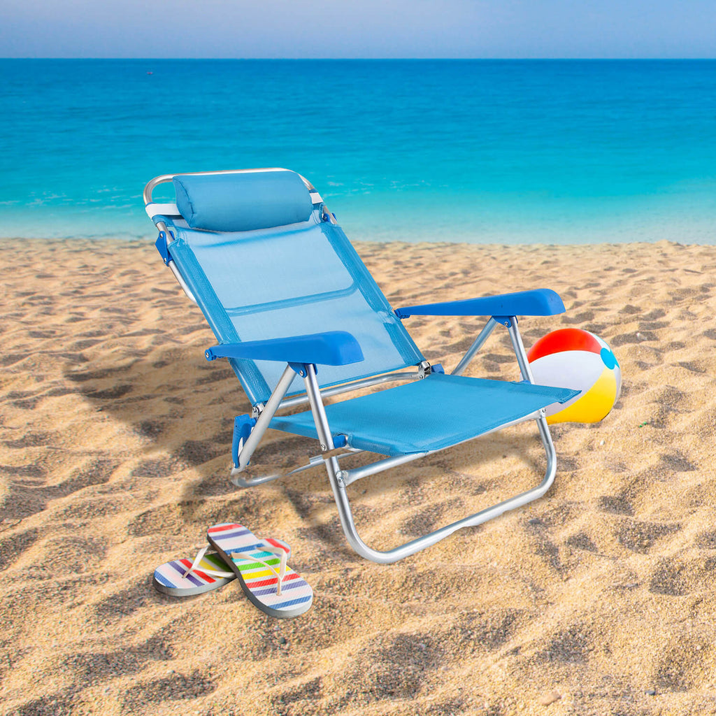 Spiaggina Sedia Prendisole Pieghevole 50x52/59x25/75 cm in Alluminio e Textilene Azzurra