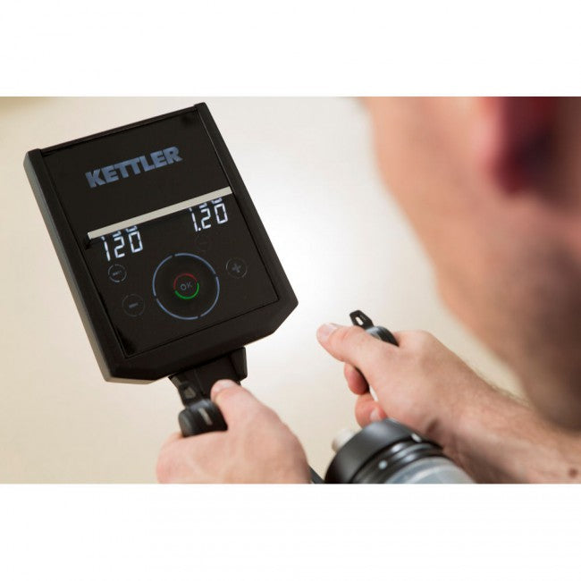 Tra i features più caratteristici troverete il cambio elettronico come su bici da corsa, la sella modello SLR di Selle Italia, svariati accessori in carbonio, pedali Kombi-Klick, freno a induzione che simula due moltipliche per un totale di 20 rapporti del cambio. Inoltre, il visore integrato sul manubrio è dotato di funzione touchscreen con innovativo controllo smartphone e compatibilità alla S-FIT App. In più, connessione Wireless al programma Kettler World Tours 2.0 per simulare percorsi e gare.