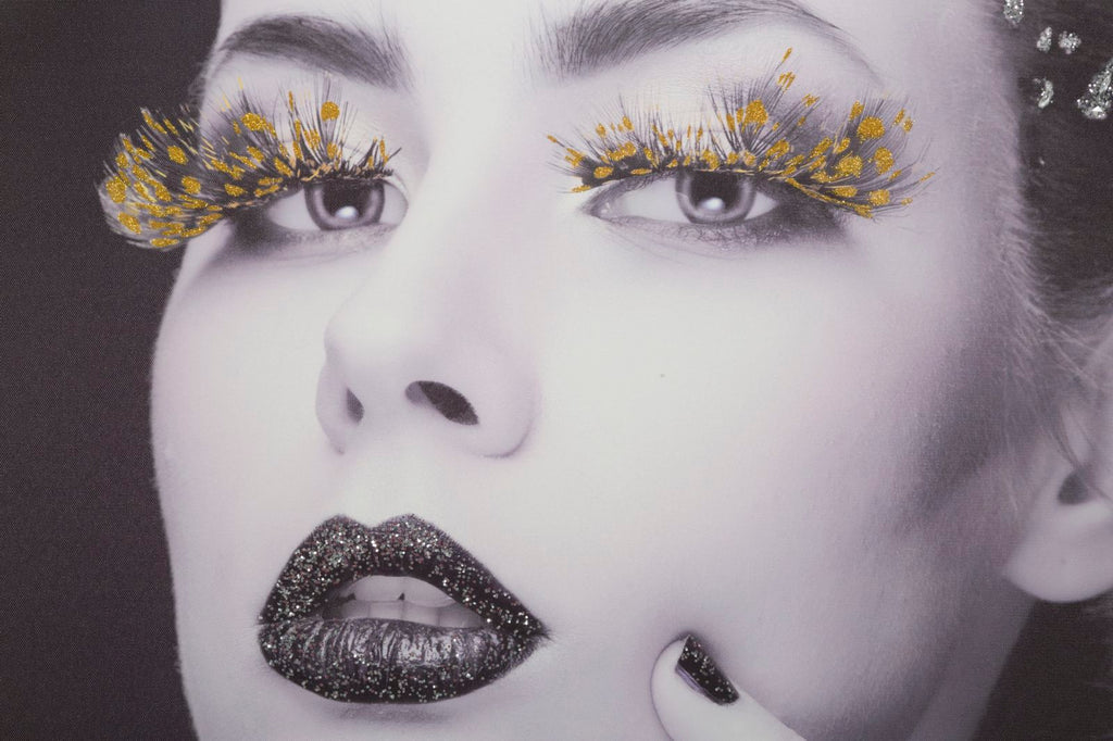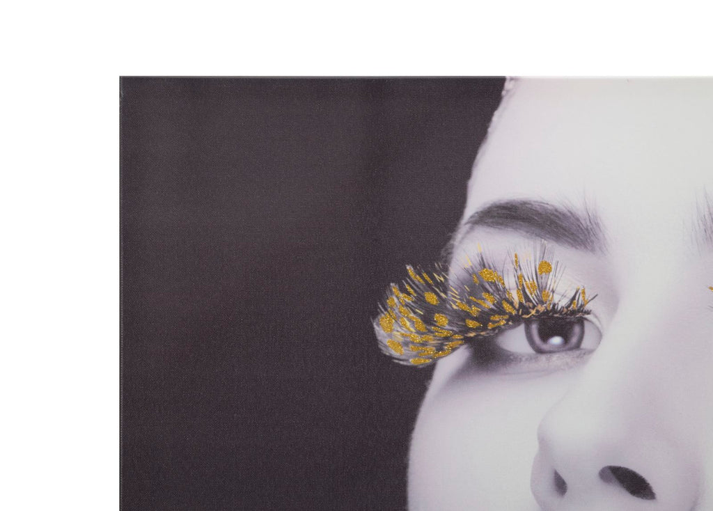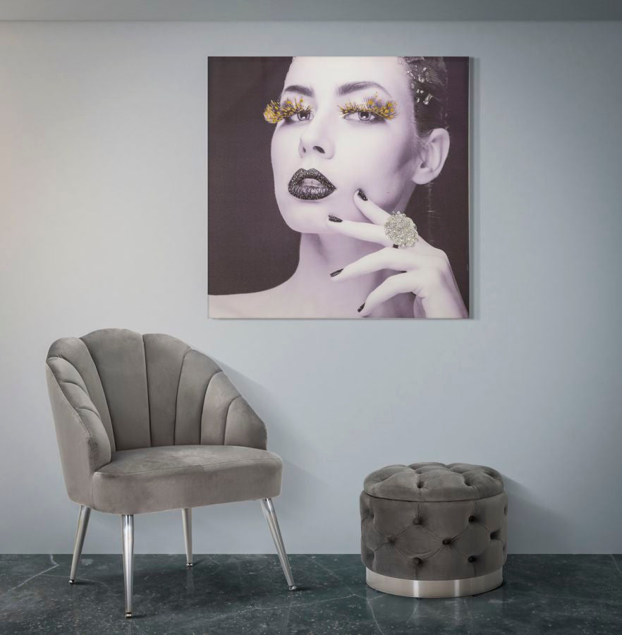 Stampa su tela con intelaiatura in legno raffigurante un volto femminile. Lo stile moderno, i toni sfumati e le eleganti applicazioni donano un tocco di classe ad ogni ambiente.