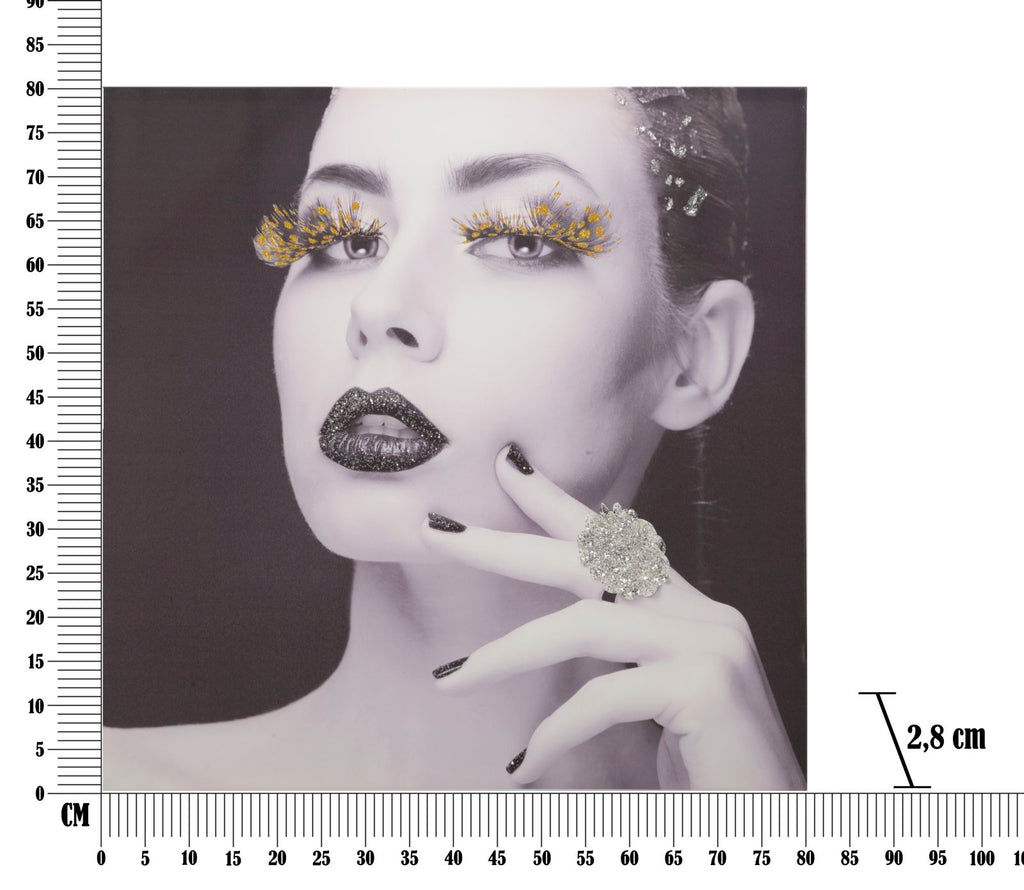 Stampa su Tela con Applicazioni Lady Dark 80x2,8x80 cm in Legno di Pino e Canvas Multicolor