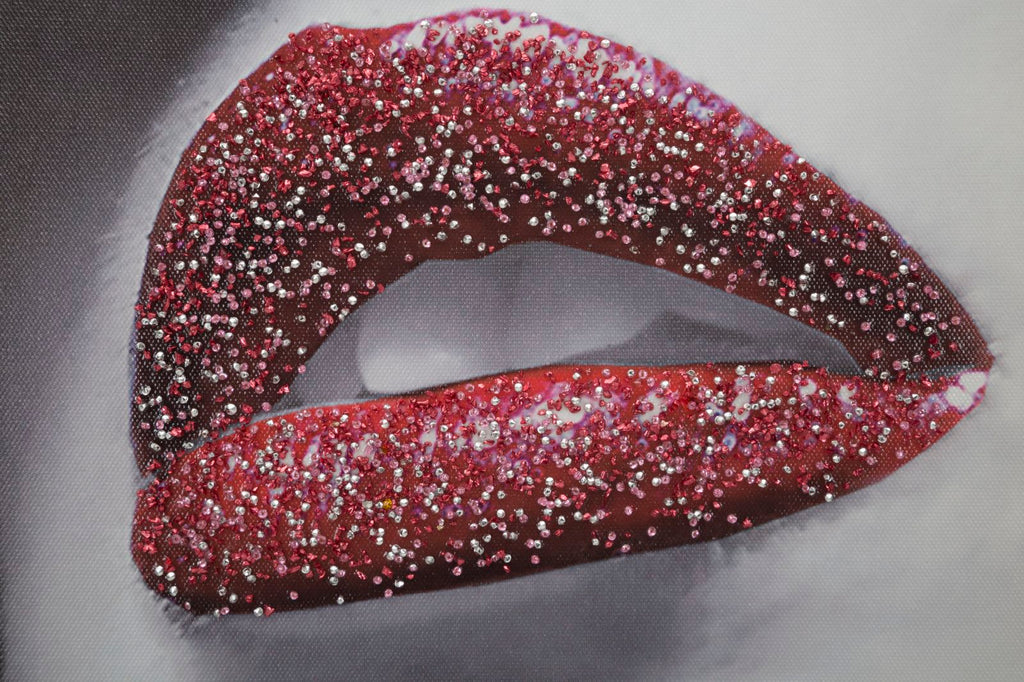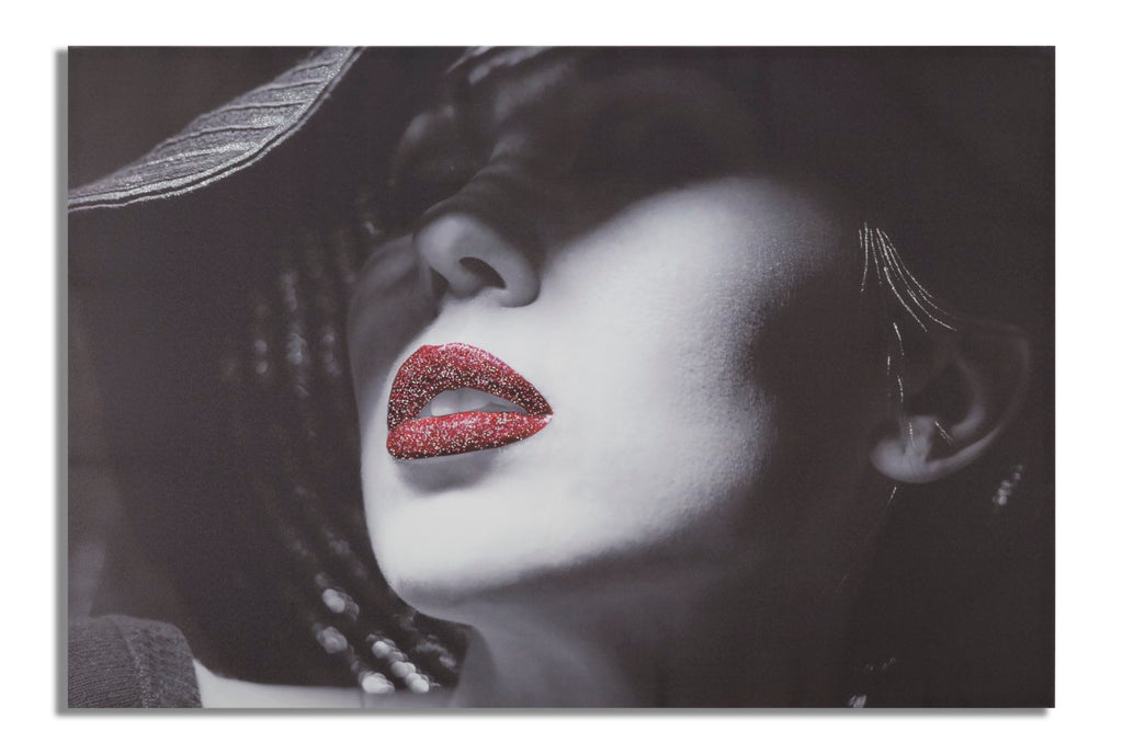 Stampa su tela con intelaiatura in legno raffigurante un volto femminile. Lo stile moderno, i toni sfumati e le eleganti applicazioni donano un tocco di classe ad ogni ambiente.