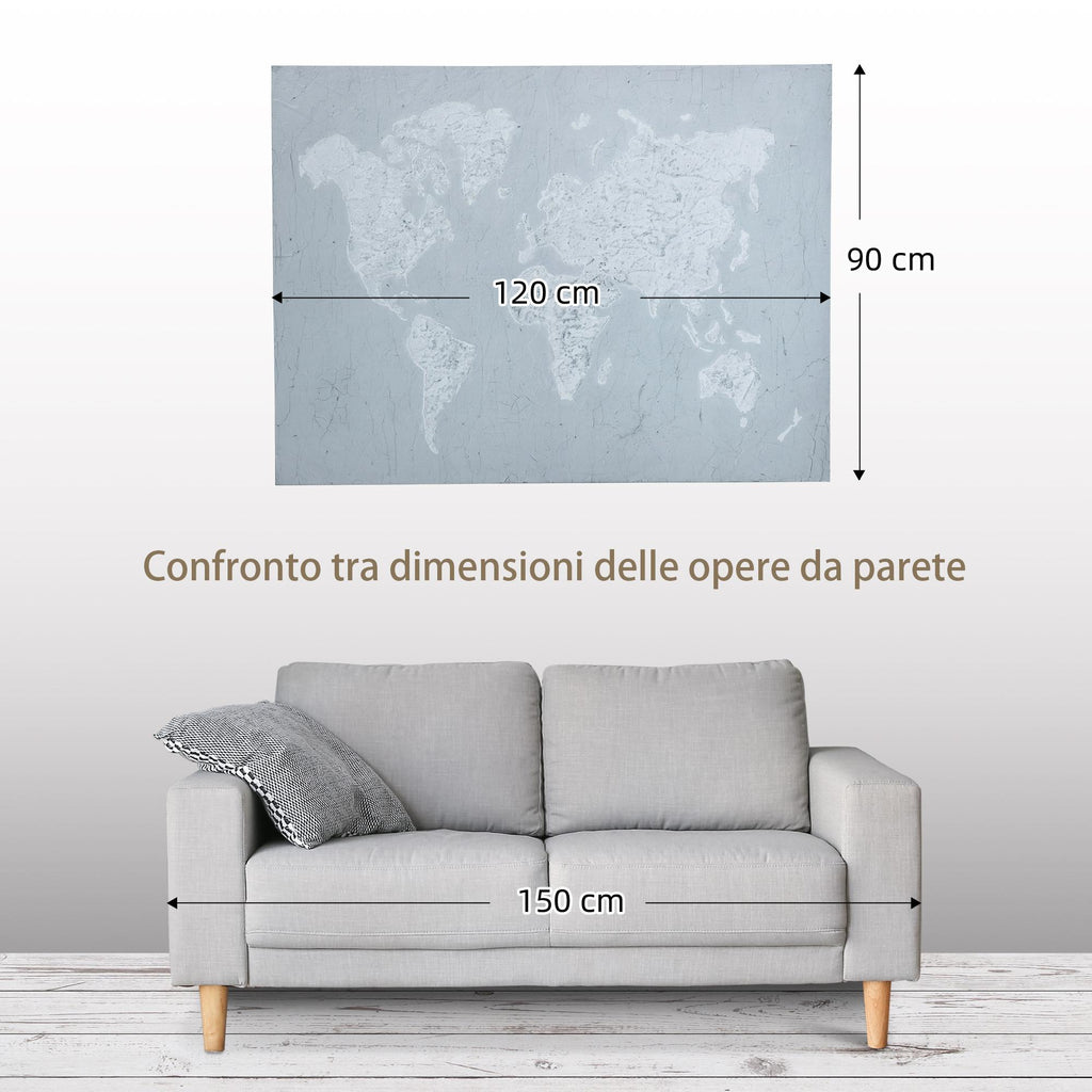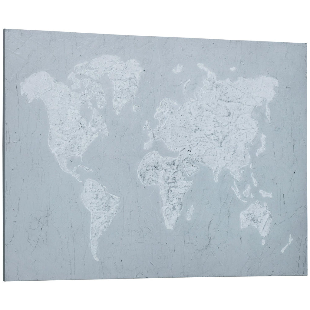 Stampa su Tela Mondo 120x90 cm in Legno di Pino Grigio e Bianco