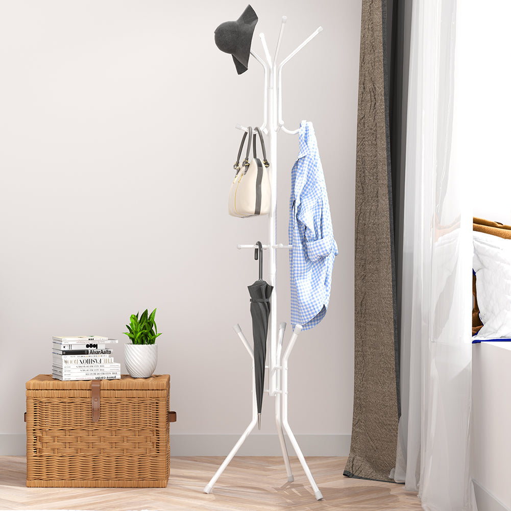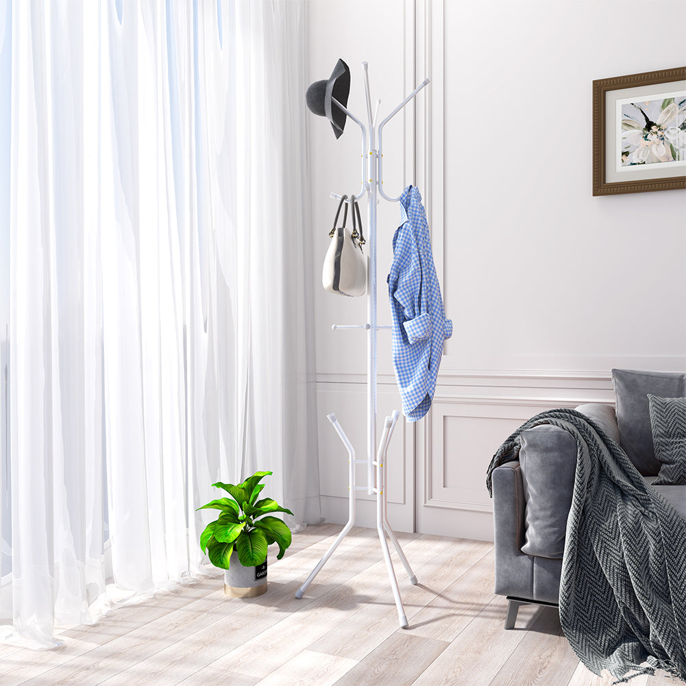 1 x Stand Appendiabiti a Piantana Bianco Attaccapanni da Terra Salvaspazio 12 Ganci
