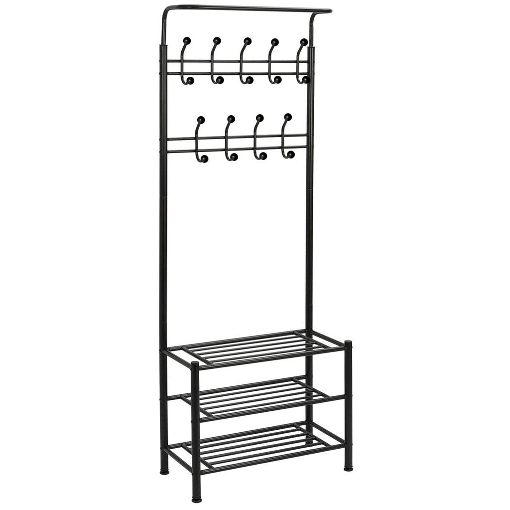 Stand Appendiabiti con scarpiera 65x29xH190 cm per corridoio 3 ripiani Nero