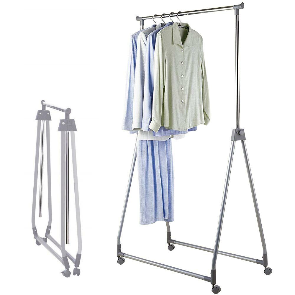 1 x Stand Appendiabiti Pieghevole Acciaio Asta Allungabile Regolabile Ruote Grigio