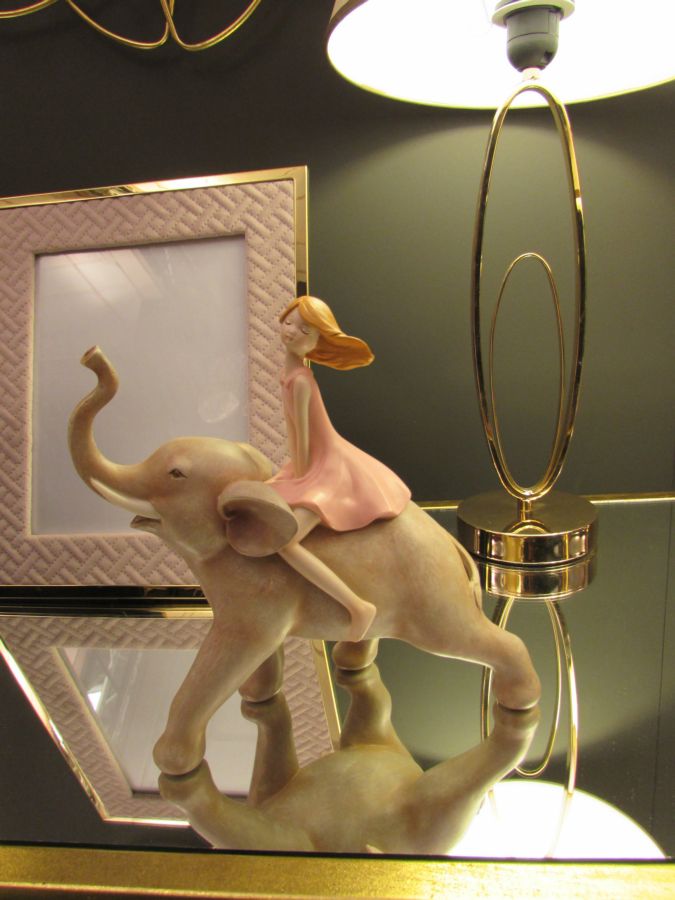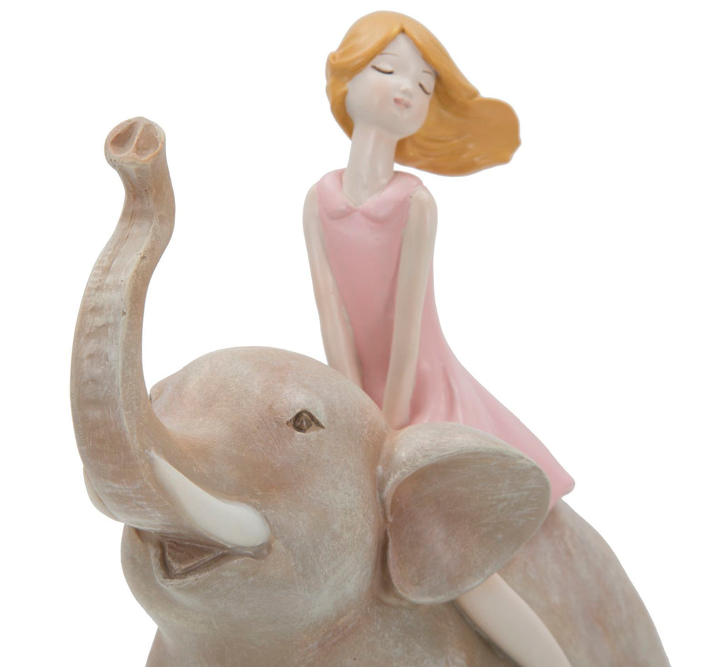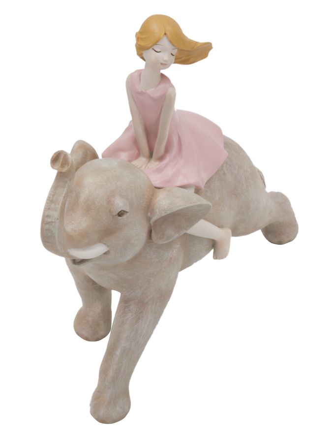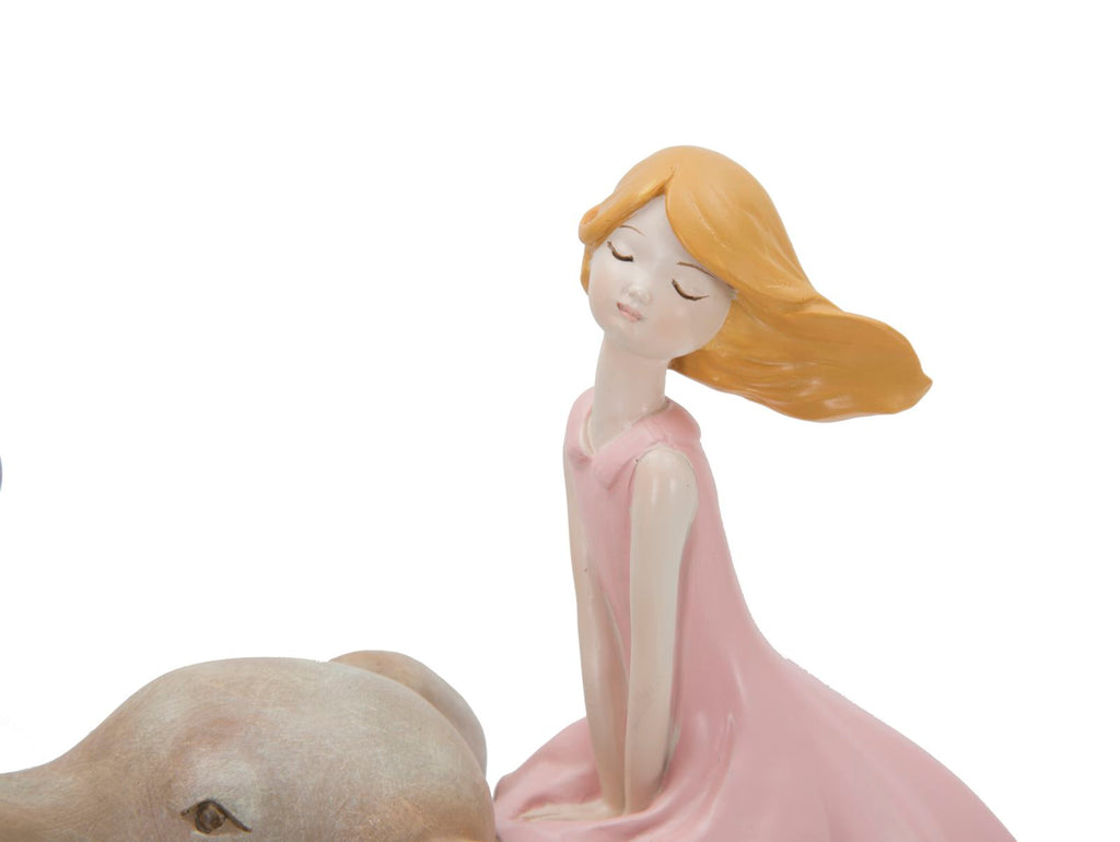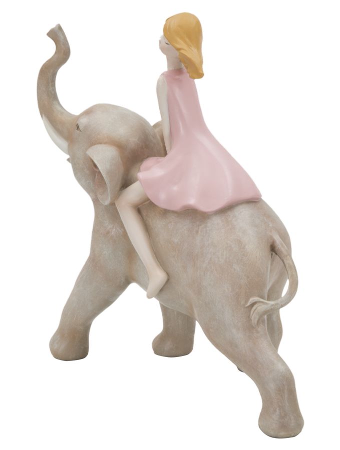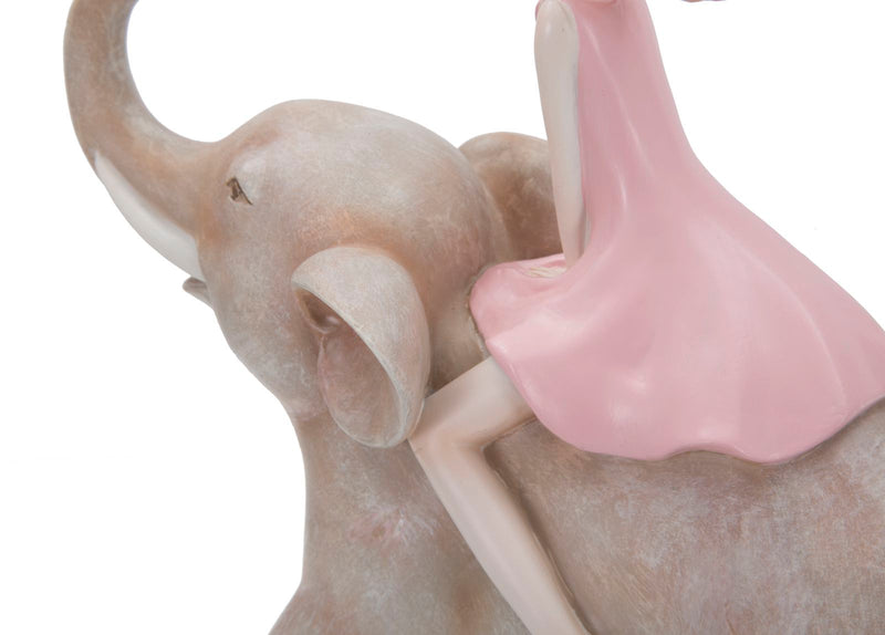 Statuetta Dolly su Elefante 22x10x21 cm in Resina Rosa