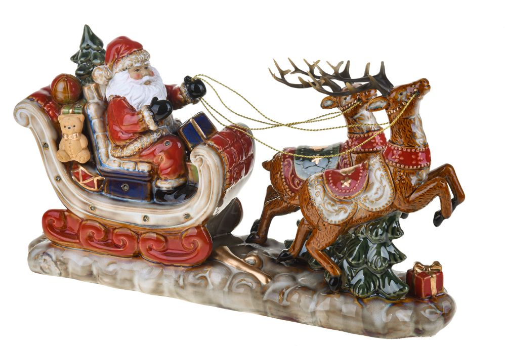 Statuina Babbo Natale con Slitta Renne 44,5 cm in Porcellana