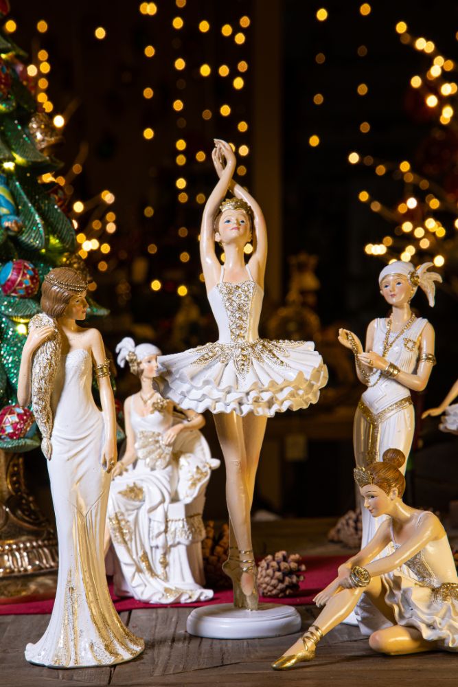 Set 2 Statuine Ballerina Seduta 12 cm in Resina