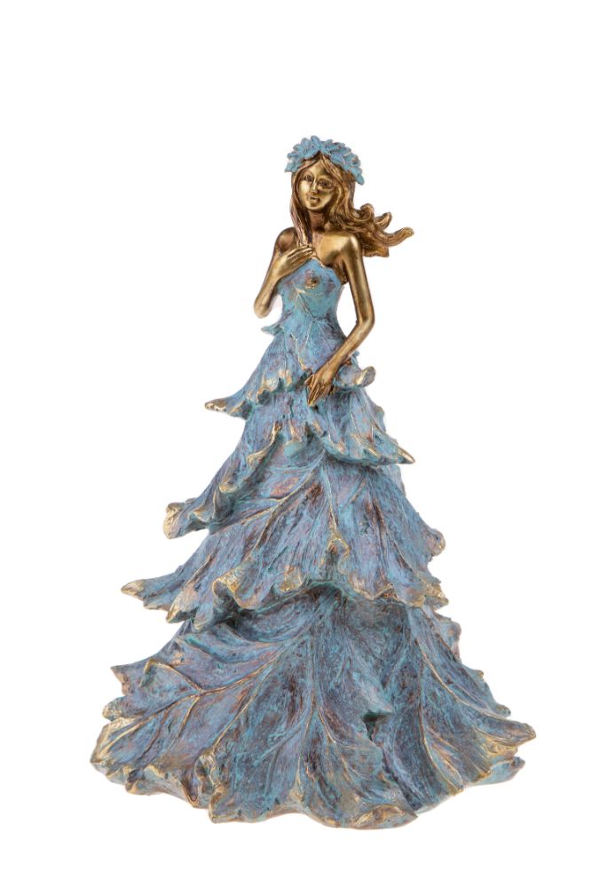 Statuina Donna con Abito 29 cm in Resina Turchese
