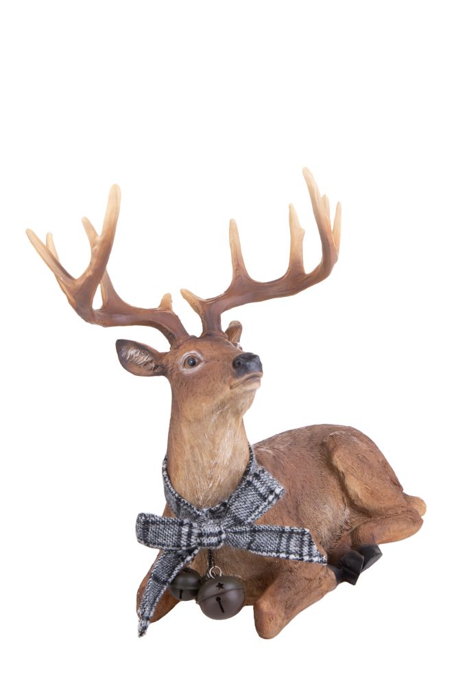 Statuina Renna Natalizia Seduta con Fiocco 34 cm in Resina