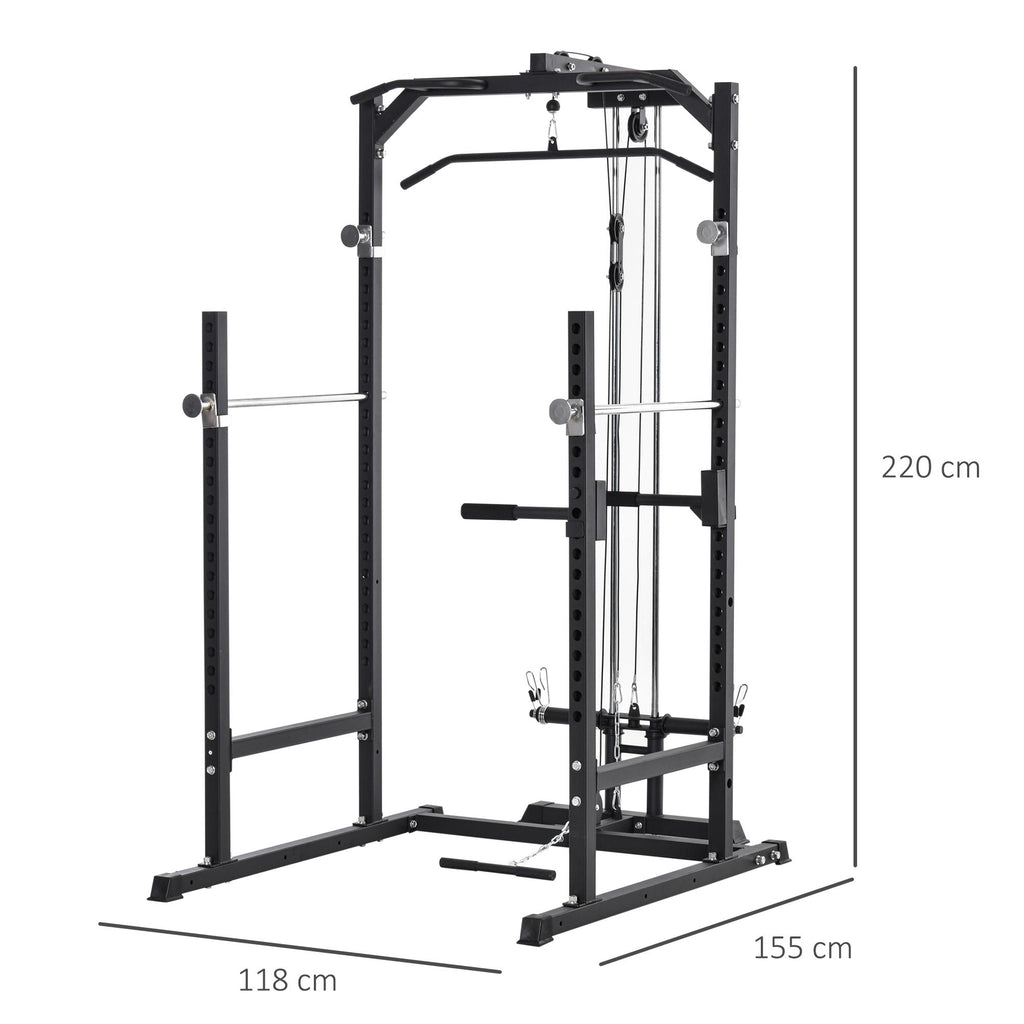 Stazione Fitness Multifunzione 155x118x220 cm in Acciaio Nero