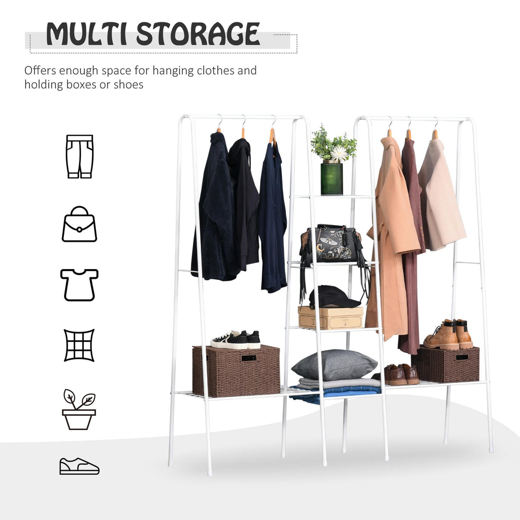 - AMPIO SPAZIO: Questa rella per abiti unisce 2 aste appendiabiti a 4 mensole centrali, per darti tutto lo spazio di cui hai bisogno per appendere i tuoi vestiti e riporre altri oggetti. La scelta ideale per la camera da letto, l'ingresso, ecc.