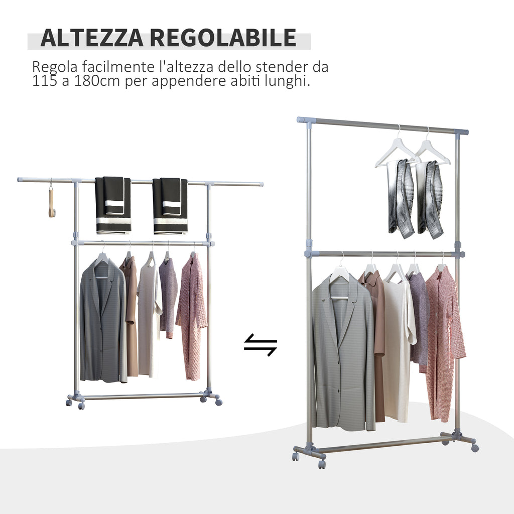Stender Appendiabiti Estensibile 165x48x180 cm in Acciaio Inox e ABS Cromato
