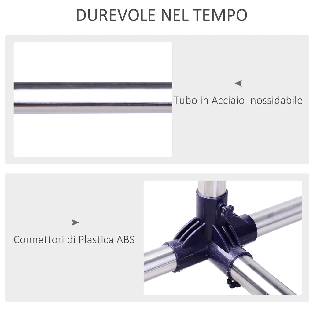 Stender Appendiabiti Larghezza e altezza regolabili con Ruote in Acciaio Inox 160x170 cm