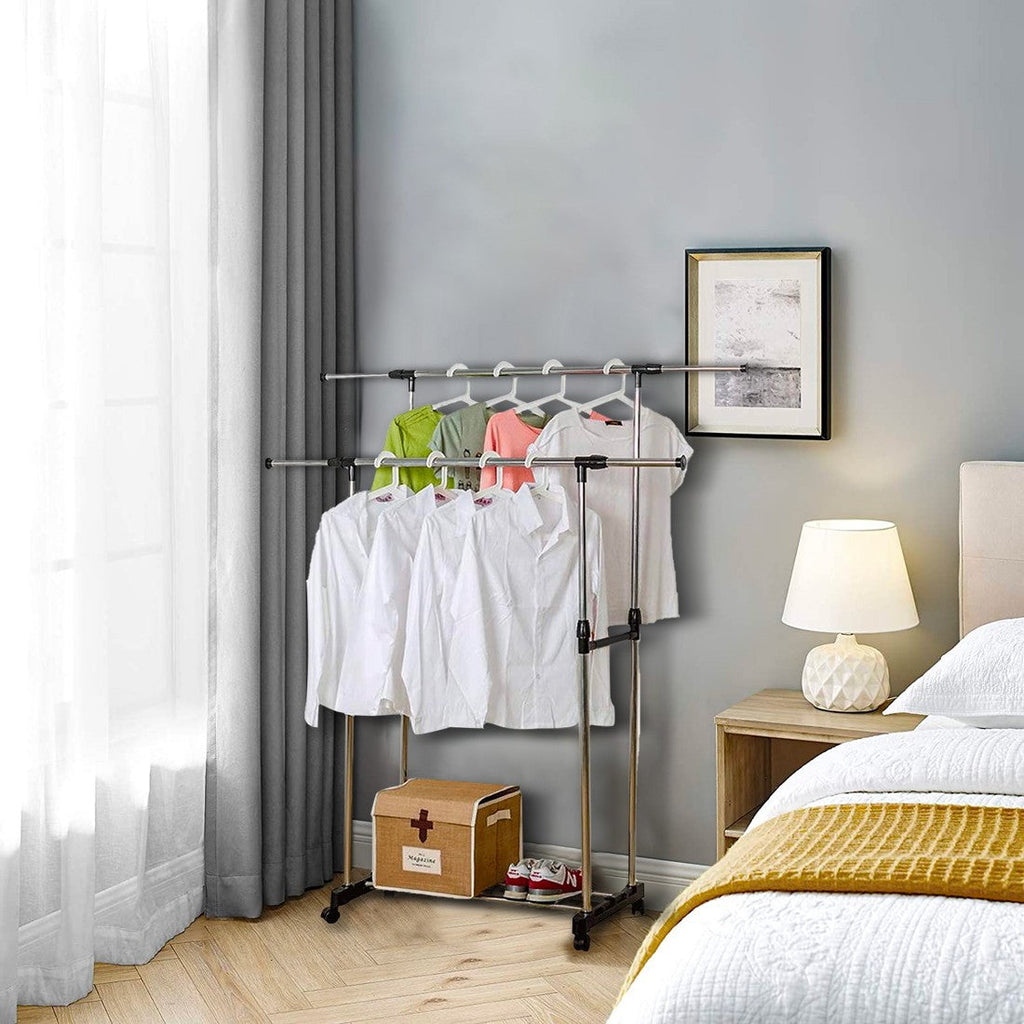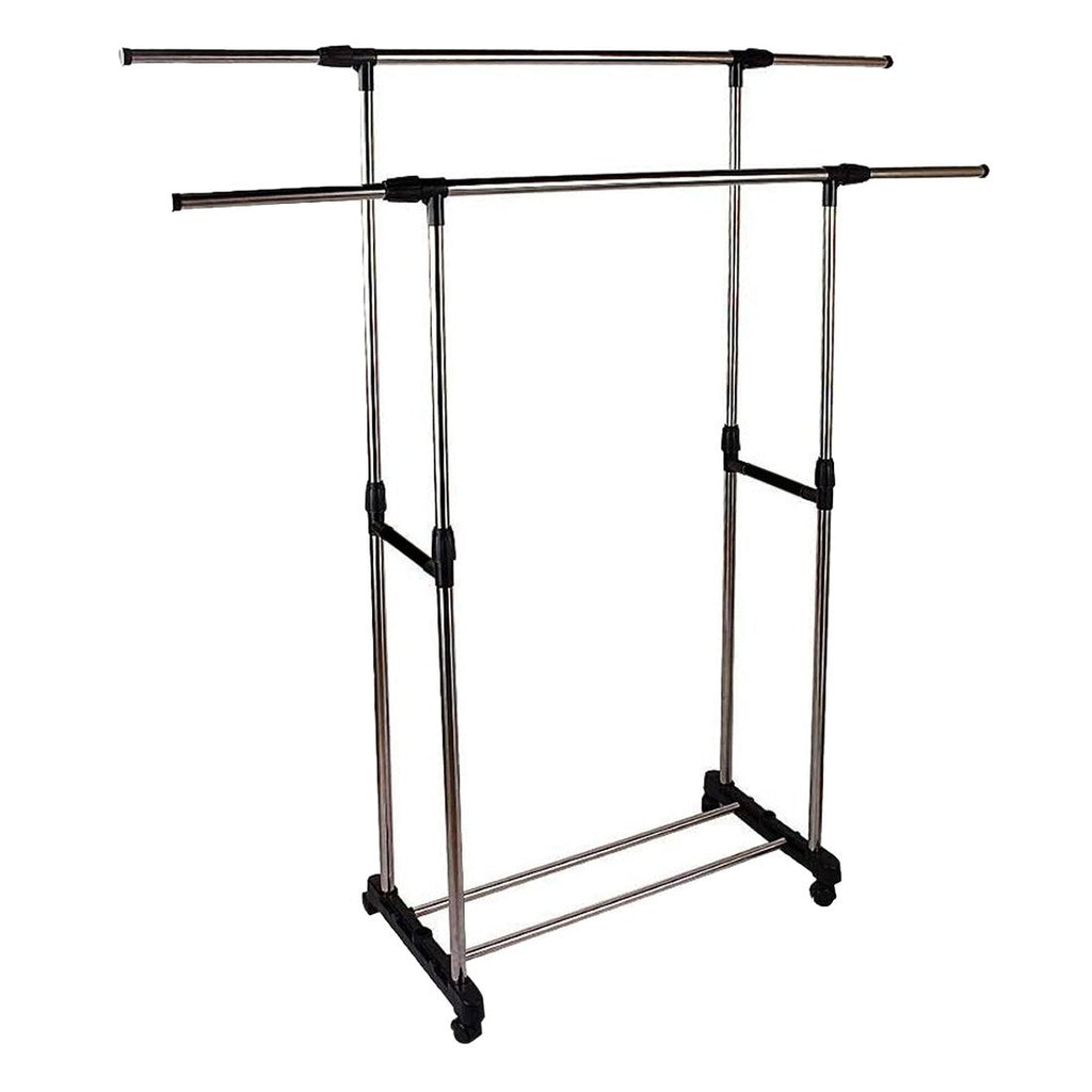 Stender Doppio Porta Abiti Appendiabiti Estensibile 31x37x111 cm in Acciaio con Ruote Girevoli