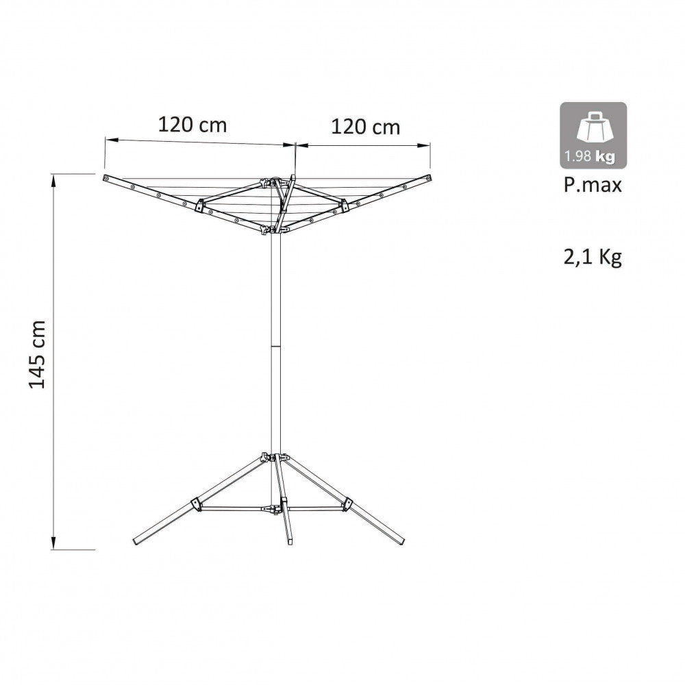 Stendibiancheria 3 Bracci 120x120x145 h cm in Alluminio Grigio