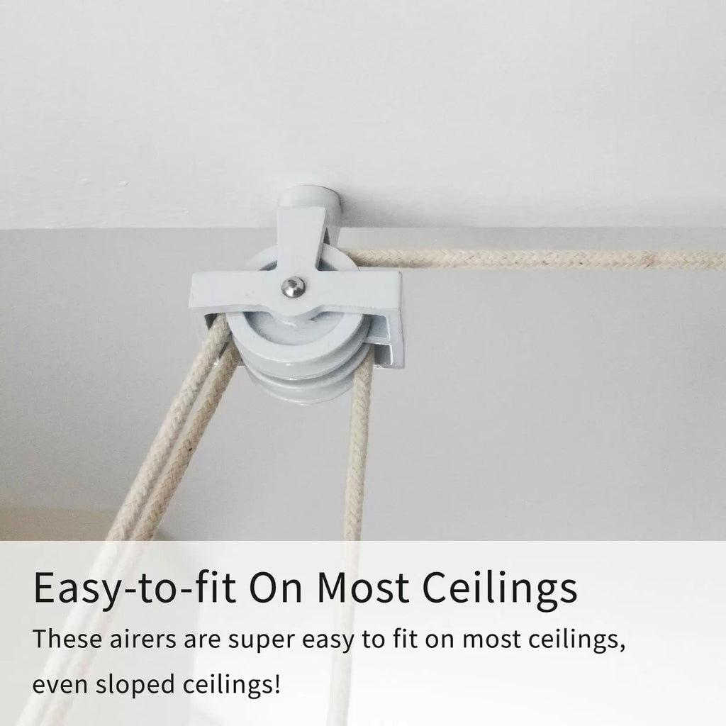 - Stendibiancheria da soffito solido e robusto con sistema di carrucole bianco