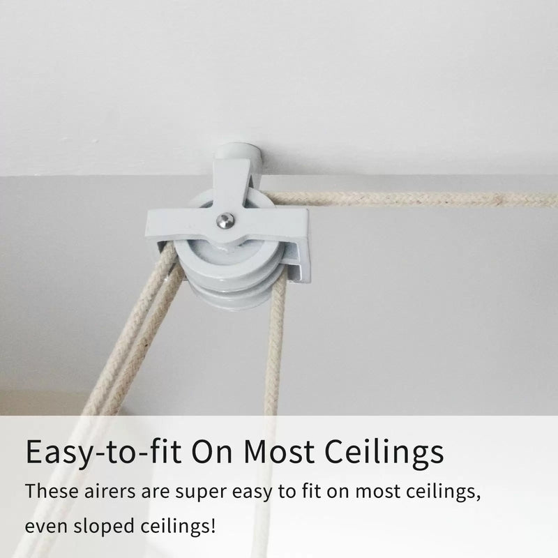 Una fantastica alternativa all’asciugatrice, questo stendibiancheria da soffito posiziona i tuoi indumenti in alto dove il calore naturale è presente e asciuga in 2-4 ore