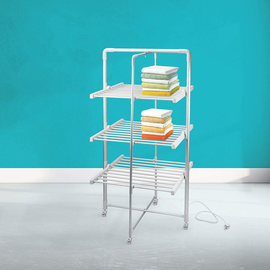 Non hai un luogo esterno per stendere i tuoi indumenti o fuori la pioggia non ti da possibilità di farli asciugare? Il comodissimo asciugabiancheria elettrico a torre fa per te. Quando è chiuso occupa pochissimo spazio, mentre da aperto ti offre lo spazio necessario per apperndervi i vestiti che si asciugheranno in tempi brevissimi. Grazie ai tre piani e alle quattro ruote è la soluzione ideale per qualsiasi ambiente della casa!