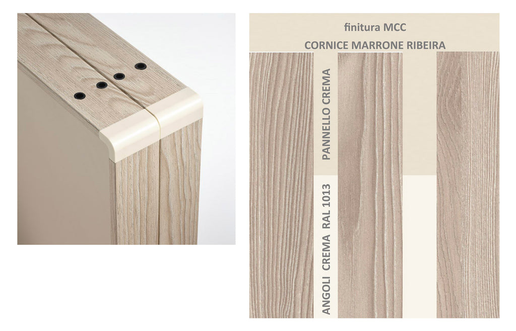 - Finitura: Cornice Marrone Ribeira, Pannello e Angoli Crema RAL 1013