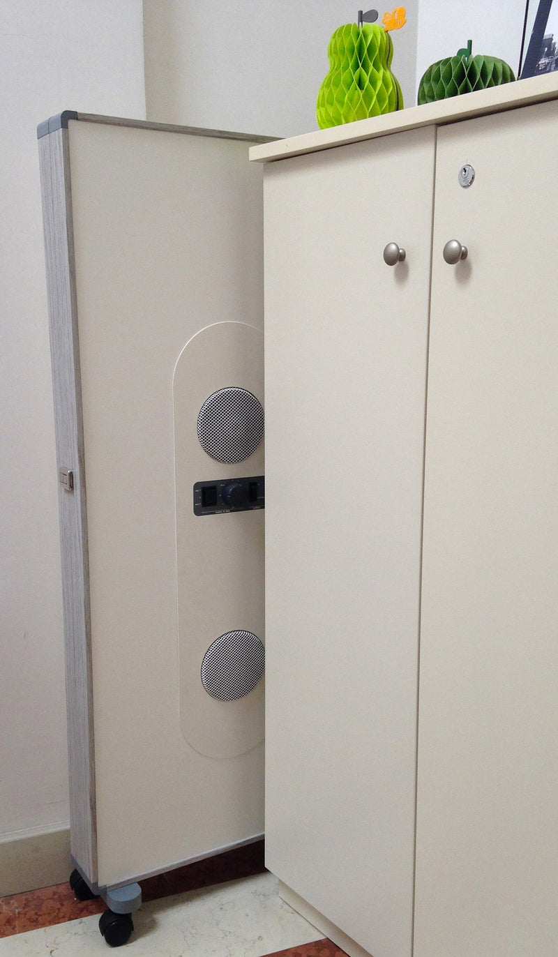 1 - motore superiore + motore inferiore soffianti entrambi all'interno del mobiletto (40 Watt) (portata d'aria 175 m3/h + 155 m3/h)