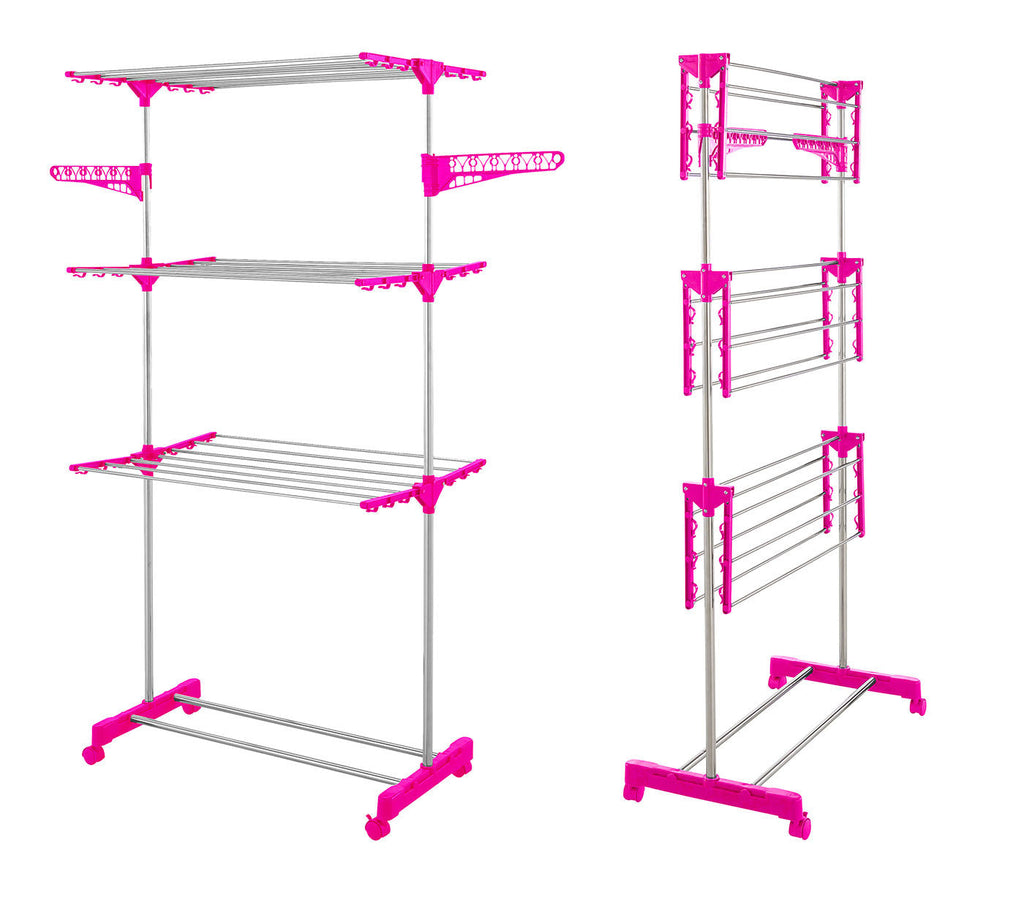 Costruito con materiale di alta qualità. Lo stendibiancheria è realizzato plastica ABS ultra resistente e in metallo, robusto ma leggero quanto basta per gestire il carico della biancheria senza perdere stabilità. Design innovativo, gli stendibiancheria Joli sono progettati per appendere una grande quantità di abiti in uno spazio limitato. Con 4 ruote girevoli a 360 ° per poterli spostare con facilità e consentono movimenti flessibili. Puoi spostare facilmente tutti i vestiti da un posto all'altro, è facile da richiudere e riporre. Lo stendibiancheria Joli ha 3 piani con doppie alette laterali, è perfetto per l'uso all'aperto per asciugare e aerare i vestiti, inoltre è ideale per l'uso in interni e appendere vestiti, borse e asciugamani ecc. L'ultimo ripiano è pensato per lasciare asciugare scarpe e calzature in generale.