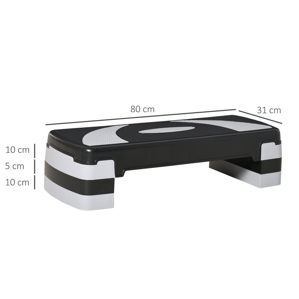 Step Professionale da Aerobica Fitness 80x31x20 cm Altezza Regolabile 10-20 cm Nero e Grigio