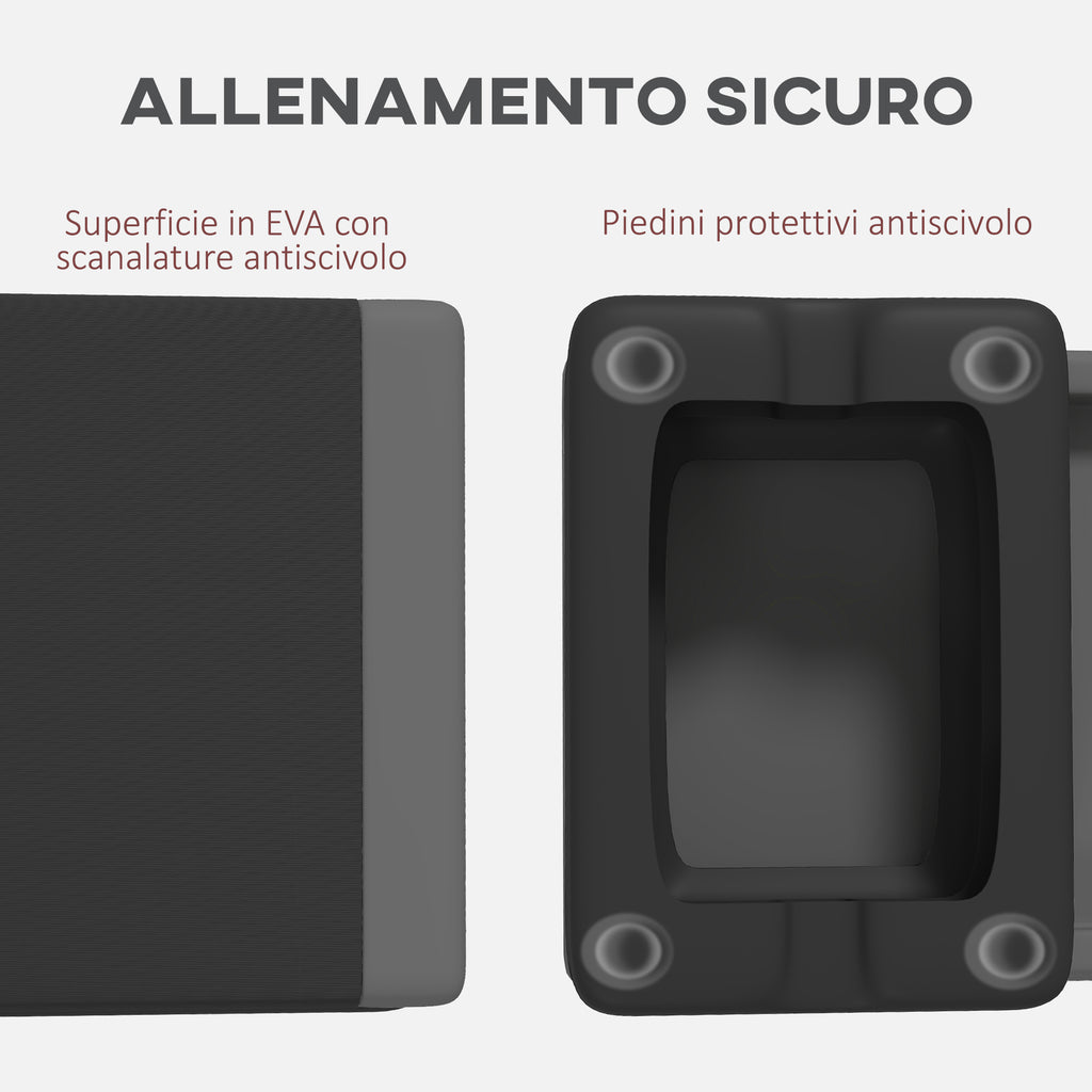 - PEDANA SICURA: Goditi sicurezza e stabilità durante ogni allenamento grazie alla superficie in EVA e i piedini antiscivolo dello step fitness