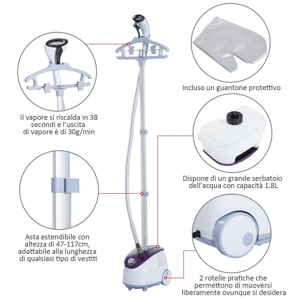 Stiratrice a Vapore Professionale Verticale Serbatoio 1.8L 1800W