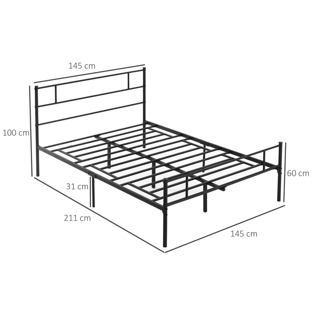 Struttura Letto Una Piazza e Mezzo 140x200 cm in Acciaio con Doghe Integrate Nero
