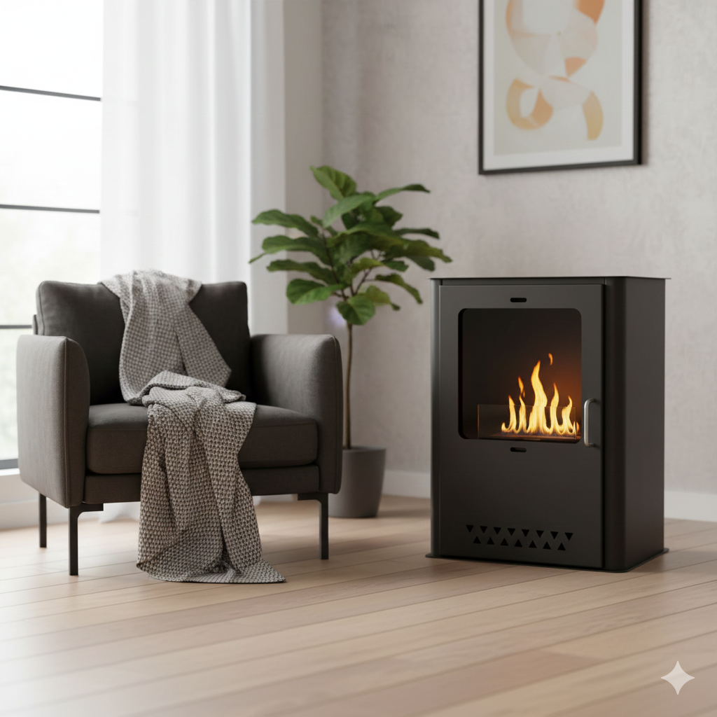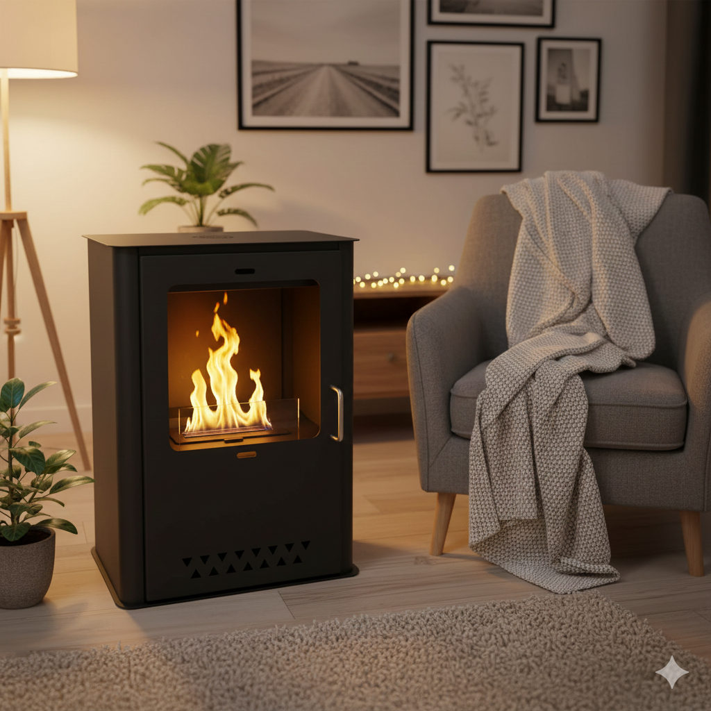 La stufa a bioetanolo è ideale per riscaldare ambienti senza bisogno di nessuna installazione e canna fumaria.