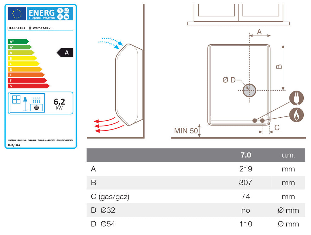 Grande comfort e risparmio energetico grazie alla modulazione automatica della potenza termica e della velocità del ventilatore. Stratos MB, una scelta tecnica che permette un forte risparmio energetico ed evita la stratificazione dell'aria negli ambienti dove installato.