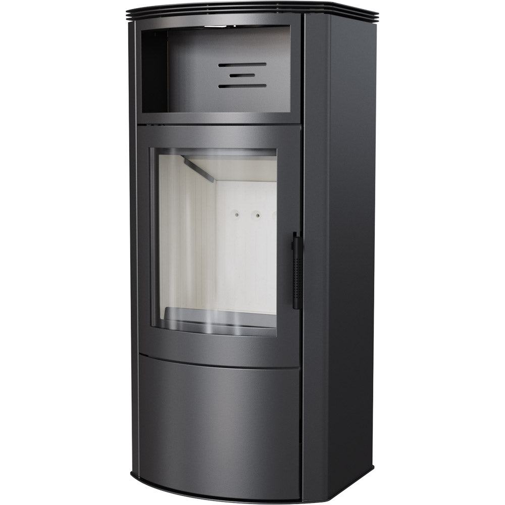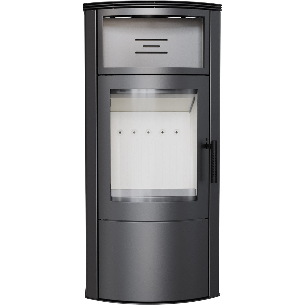 Stufa in acciaio autoportante con un frontale arrotondato che consente di vedere il fuoco da diversi lati. È un'ottima soluzione per le persone che desiderano il calore, ma non hanno un grande spazio al loro interno. Le moderne soluzioni tecniche garantiscono una combustione economica ed ecologica.
