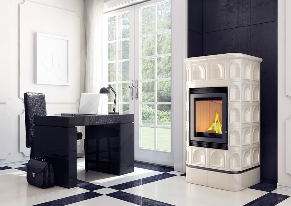 Stufa a Legna 136.5x71.5x59.8cm Flig Raleigh Crema con Piastrelle Crema