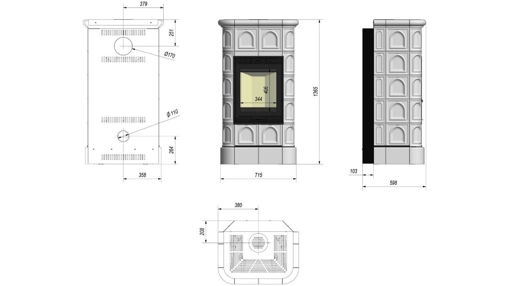 Caratteristiche Tecniche Stufa a Legna 136.5x71.5x59.8cm Flig Raleigh Crema con Telecomando