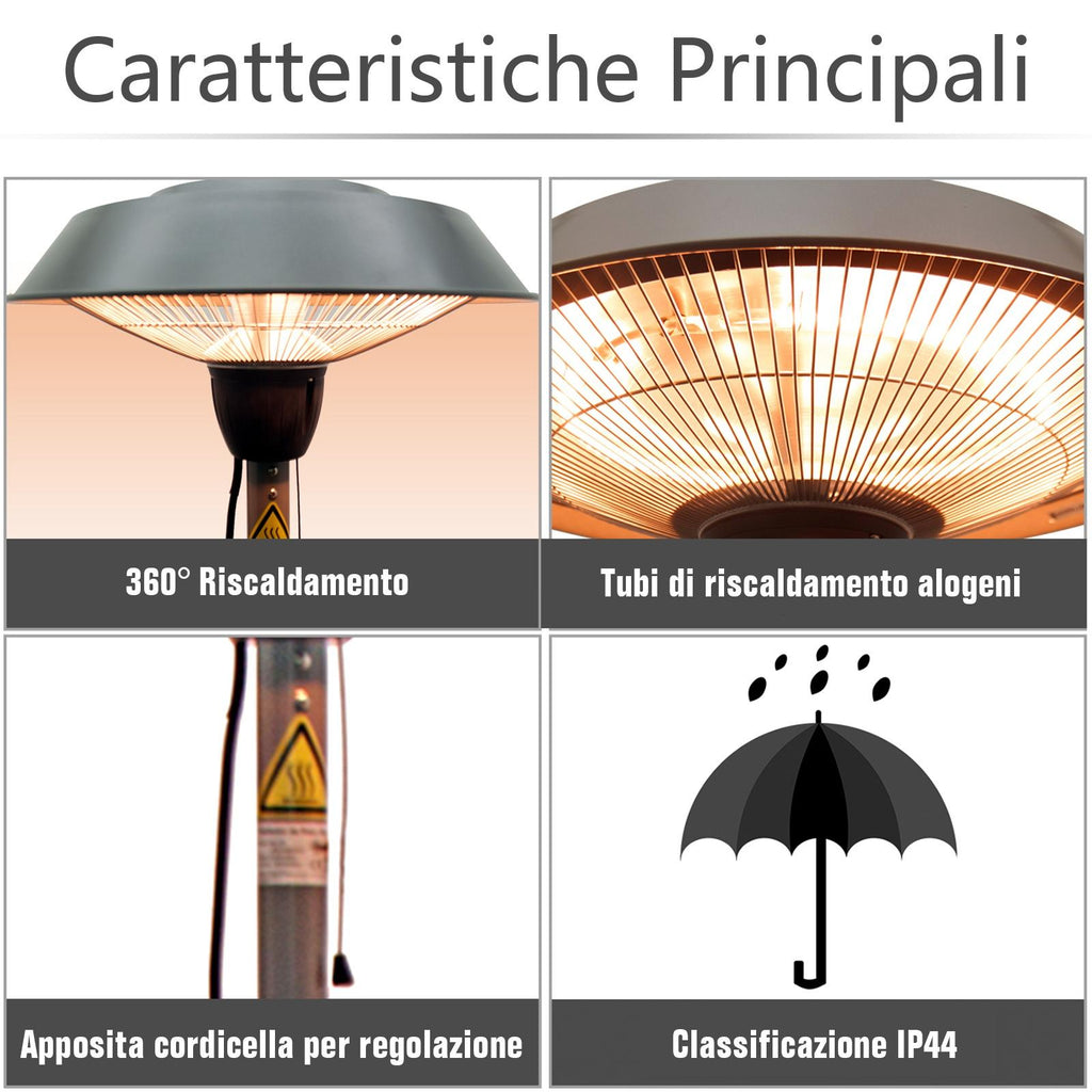 Stufa da Esterno Fungo Riscaldante Elettrico 1500W Impermeabile in Alluminio 200 cm