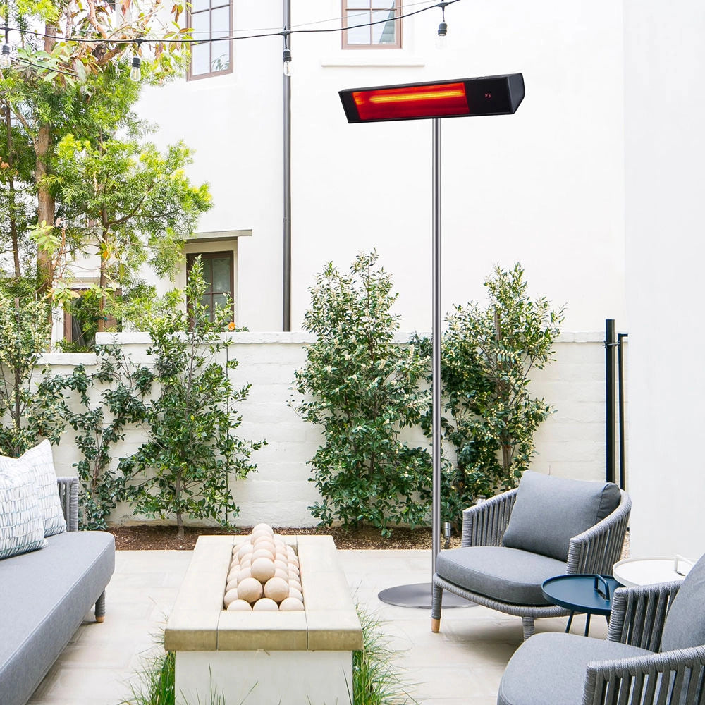 - Radiatore a infrarossi WIFI per esterni da 2000W con piedistallo a onda corta IR-A realizzato in acciaio inox, alluminio anodizzato e vetroceramico