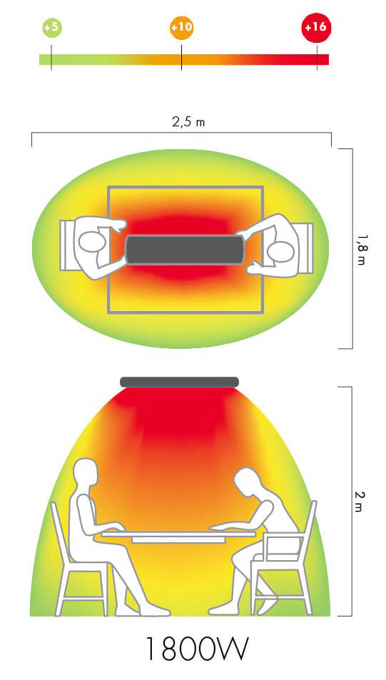 Riscaldare le persone in luoghi come ristoranti o bar. Anche per lungo tempo, riscalda in modo avvolgente e piacevole.