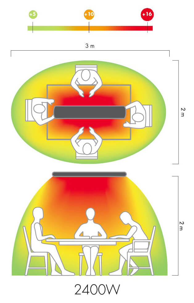 Riscaldare le persone in luoghi come ristoranti o bar. Anche per lungo tempo, riscalda in modo avvolgente e piacevole.