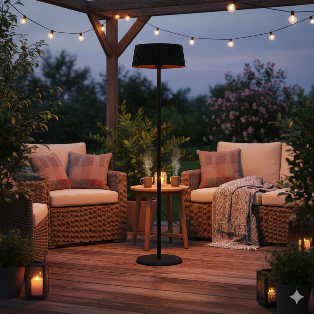 Stufa Elettrica ad Infrarossi da Esterno Ø50xh205 cm 1500W in Alluminio e Acciaio Nero