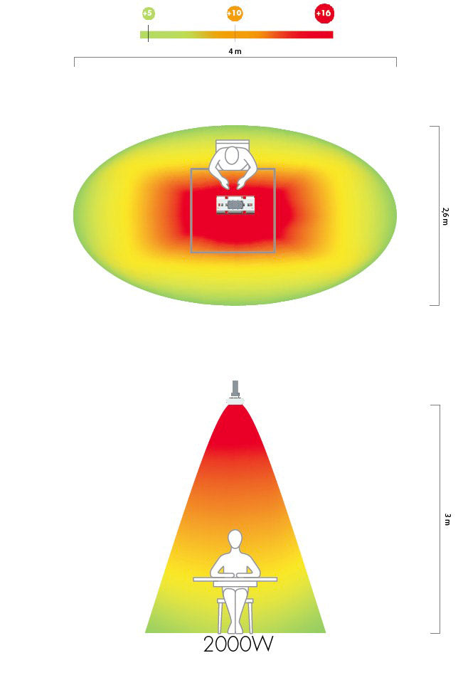 - IP55, performante e direzionabile è facile da installare. Perfetto per riscaldare persone a distanza. Con lampada GOLD.
